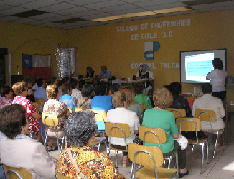 El miércoles 7 de marzo, la Agente Regional Paulina Espinoza, se reunió con una cincuentena de profesores jubilados en el Colegio de profesores de Talca, con el fin de exponerles los beneficios comprendidos en las Garantías Explícitas en Salud, más conocidas como AUGE o GES.