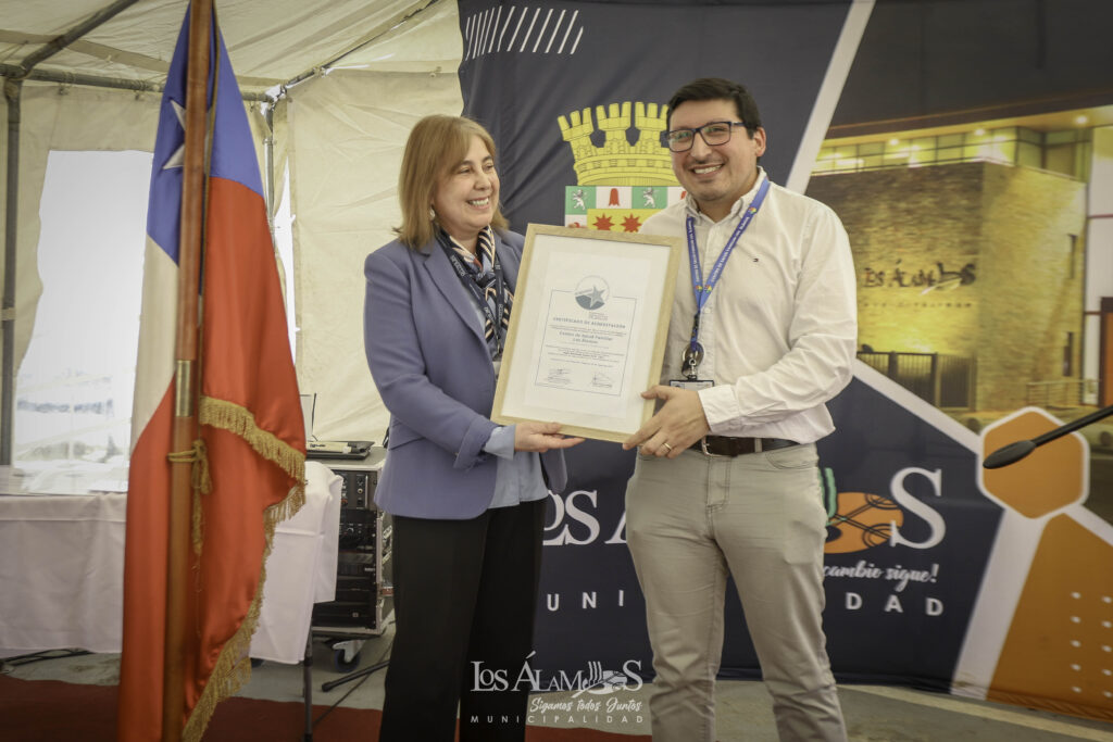 El martes 26 de agosto, se llevó a cabo la ceremonia de entrega del certificado de la Primera Acreditación en Calidad del CESFAM Los Álamos, ubicado en la Región del Bío Bío. Este centro de salud, que depende de la Municipalidad de Los Álamos, brinda atención médica a cerca de 24 mil personas y acaba de recibir un importante reconocimiento por su compromiso con la calidad y la seguridad en la atención de las y los pacientes.