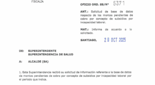 Se informa de acuerdo a solicitud de base de datos respecto de los montos pendientes de cobro por concepto de subsidios por incapacidad laboral.